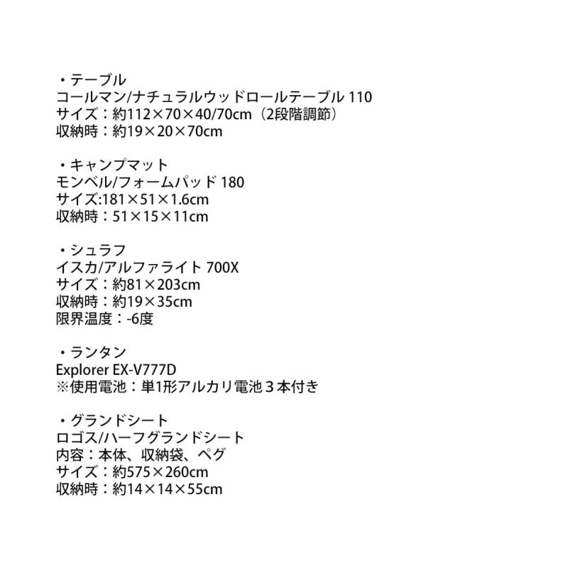 ※テント以外のアイテムは、予告なく代替アイテムのお届けとなる場合がございます。