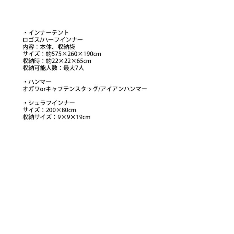 内容:本体、ペグ、ロープ、キャリーバック、ハンマー