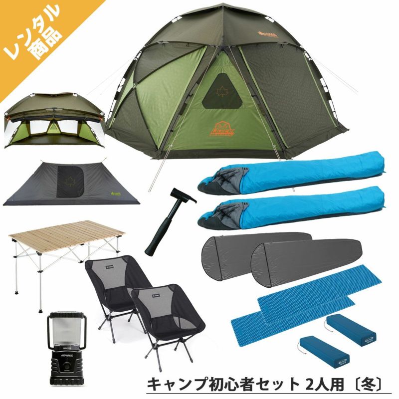 6人でもゆったりワイワイ!【1月早期予約】キャンプ初心者セット 2人用〔冬〕テント・テーブル・チェア・キャンプマット・シュラフ・ランタン・グランドシート・インナーテント 冬におすすめ【キャンプレンタル】WD2