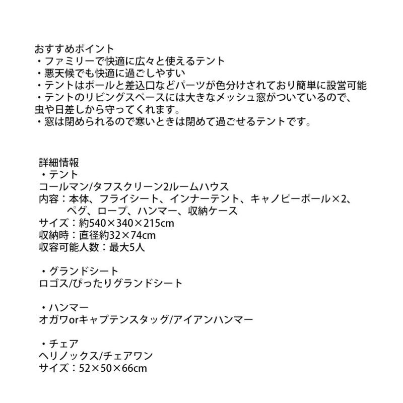 ファミリーにおすすめのテントを組み合わせたセットになります。