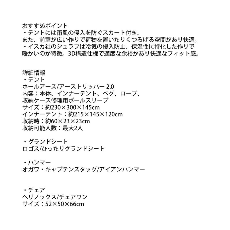 テント・チェア・薪ストーブ・サウナストーン・一酸化炭素チェッカーなど